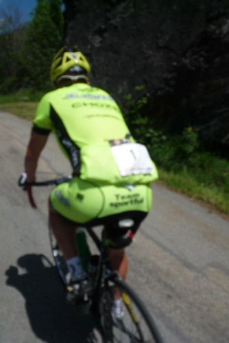 But the race must go on and as I turned right onto our first climb I found something nice; I ‘had the legs’. I remembered the 1st two climbs well from last year and in particular how much they hurt. This time I was tearing up the first at a decent speed, with pain in the legs, but they just kept working…how novel! The same thing happend on the 2nd climb, which was a substantial 7km long. I never once thought that the hams would just give up the ghost, like just about every climb early last year. I could count on them. On the flats, too, when I needed to sprint to keep up with a group, or maybe bridge a gap, it worked also. It’s fun to ask your body to do something and find it responding positively. Maybe I wasn’t using the right tone with it before…?