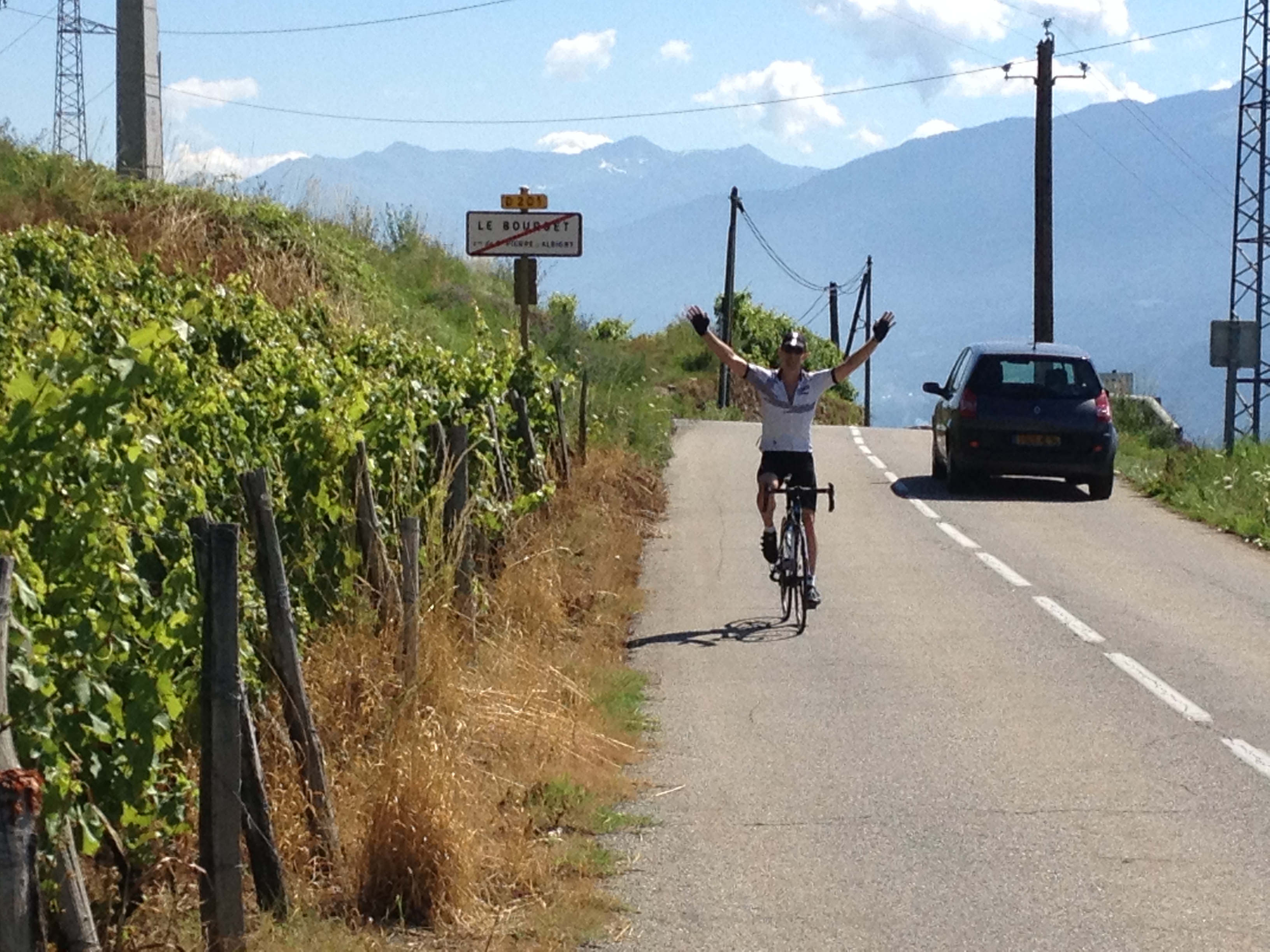Somewhere along this Road of Constant Sorrow Erik had enough of the waiting (he kindly insists he wasn’t) and flew off to glory. I plugged on, thinking once or twice that I might not make it, but probably knowing I would. I stopped once for a minute to regroup and it was a little better afterwards. The oom pah pah band in the final village helped, as did the wonderful people lined along the roads, ‘allez-ing’ us all the way up.