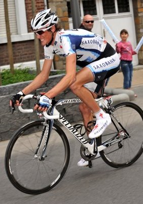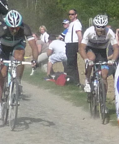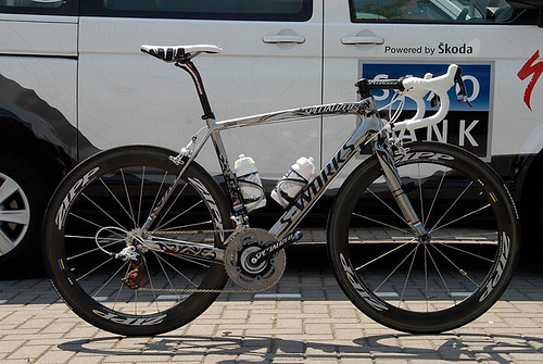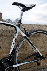 Eddy, on the left, looks a bit more stretched out than does Andy Schleck, on the right. The reason, according to Competitive Cyclist, is that the length of the top tube on Eddy’s bike is longer than Andy’s. His saddle is also sitting a bit further behind his bottom bracket, giving him a sleek and powerful, yet (presumably) more comfortable position. Andy, on the other hand, is sort of scrunched up and looks to be leaning forward. This is the Competitive Fit, which is aggressive and fast, but maybe not the best for long hours (for mortals, that is…) in the saddle.