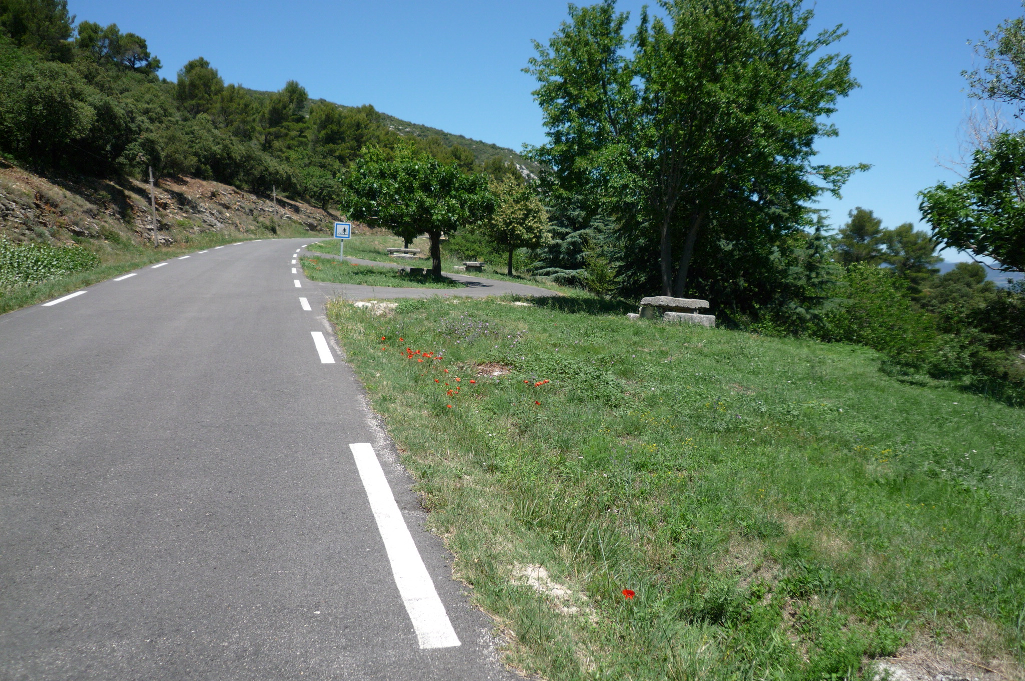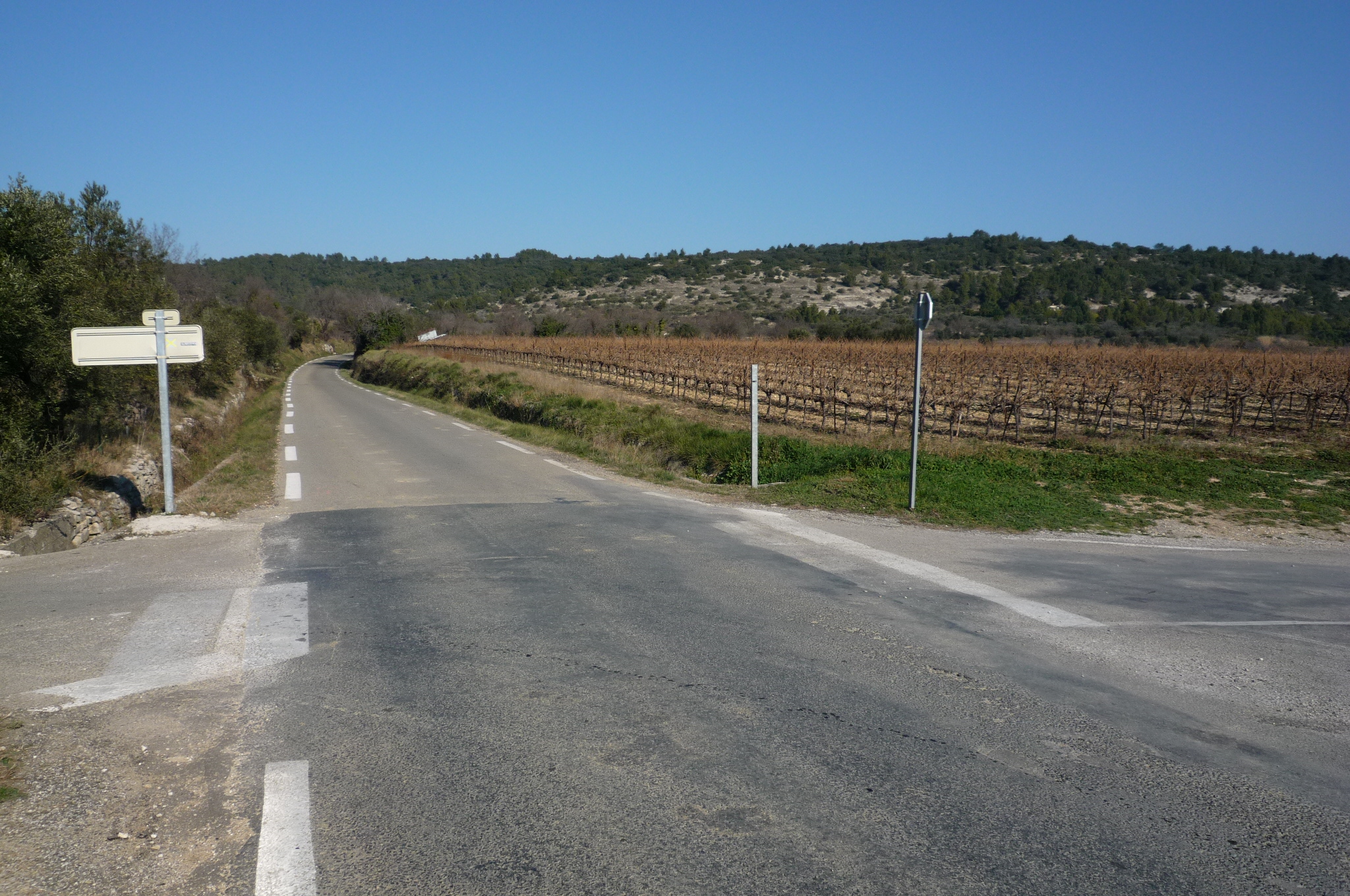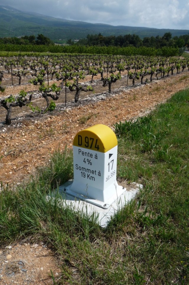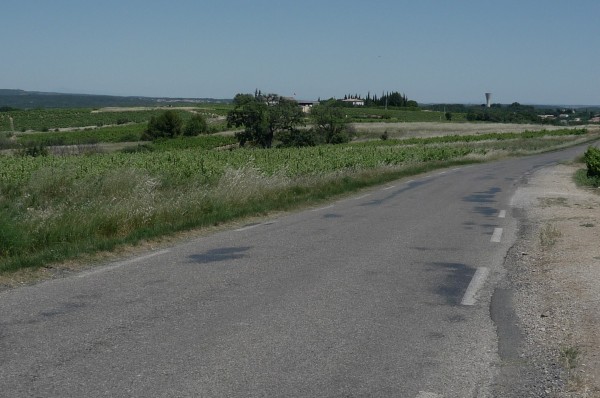 Cycling friend John recommended two hills near his house in the Vaunage for training, so thought I’d give them a try. Here’s the bottom of the first, which starts from the village of Clarensac.