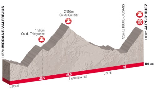 So, I’ve registered my sagging gut and bum knee for this short, but stupidly vertical stage next July. This route is smack dab in the middle of the Alps and has three famous climbs, the last two begin absolutely legendary: the Col du Télégraphe, Col du Galibier and Alpe d’Huez.