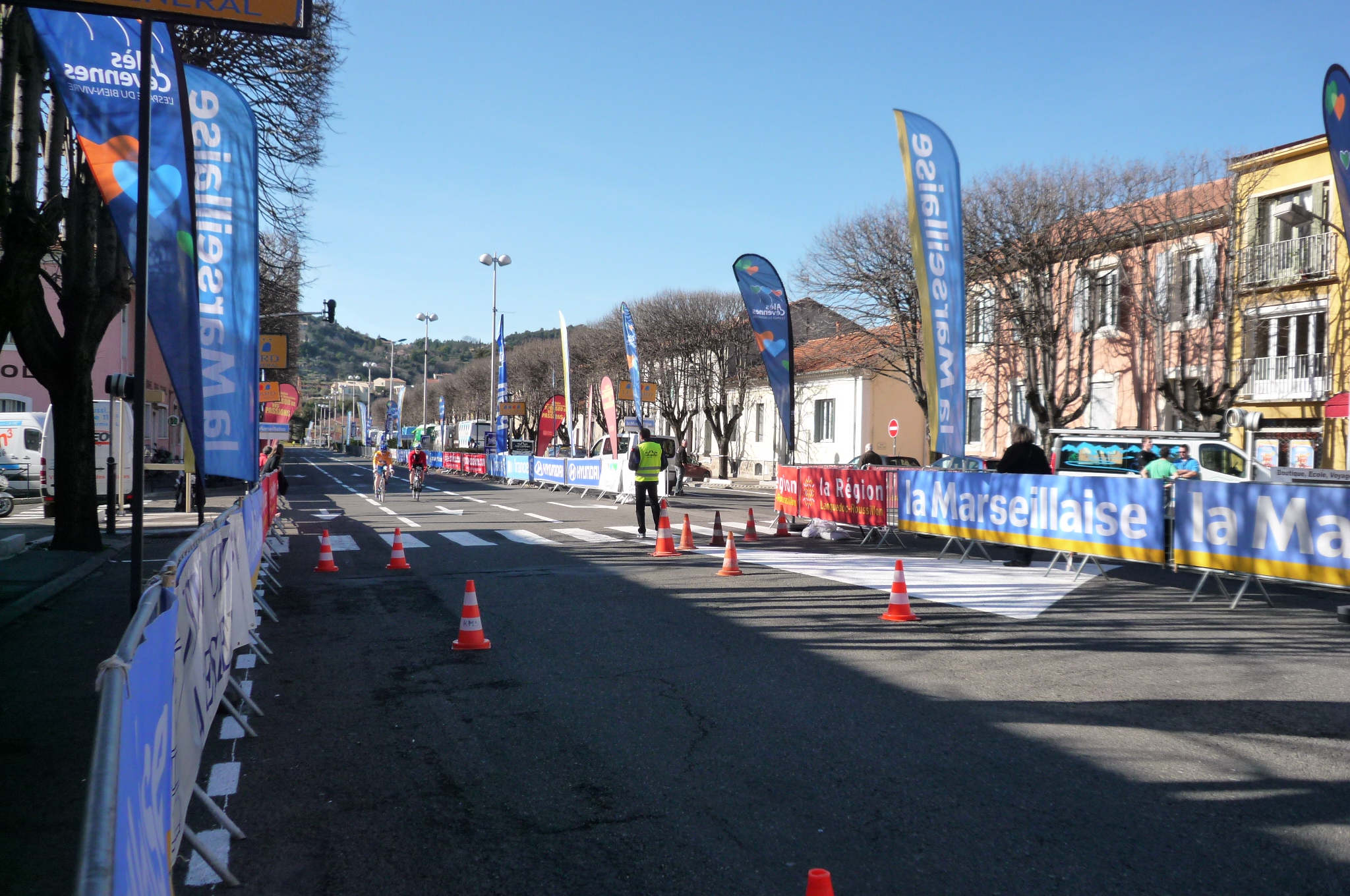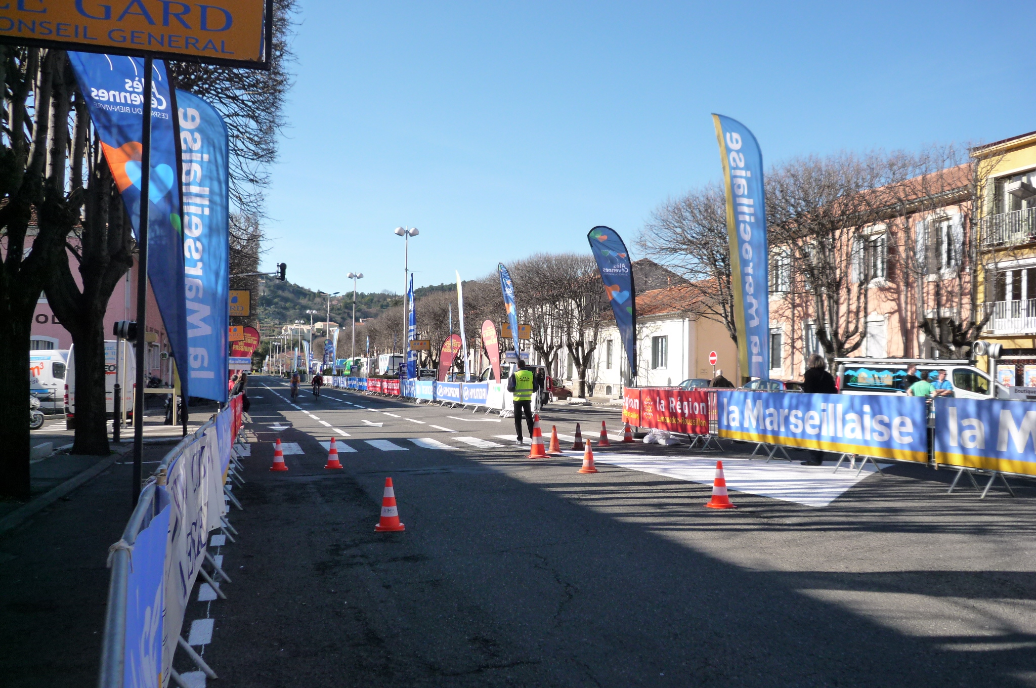 Therefore, needing all the help I can get, I finished up work early yesterday and hopped on the train to Alès, start/finish point to the race next week. Here’s the flat, fast N109 outside town, where we’ll spend the first 15 km or so.