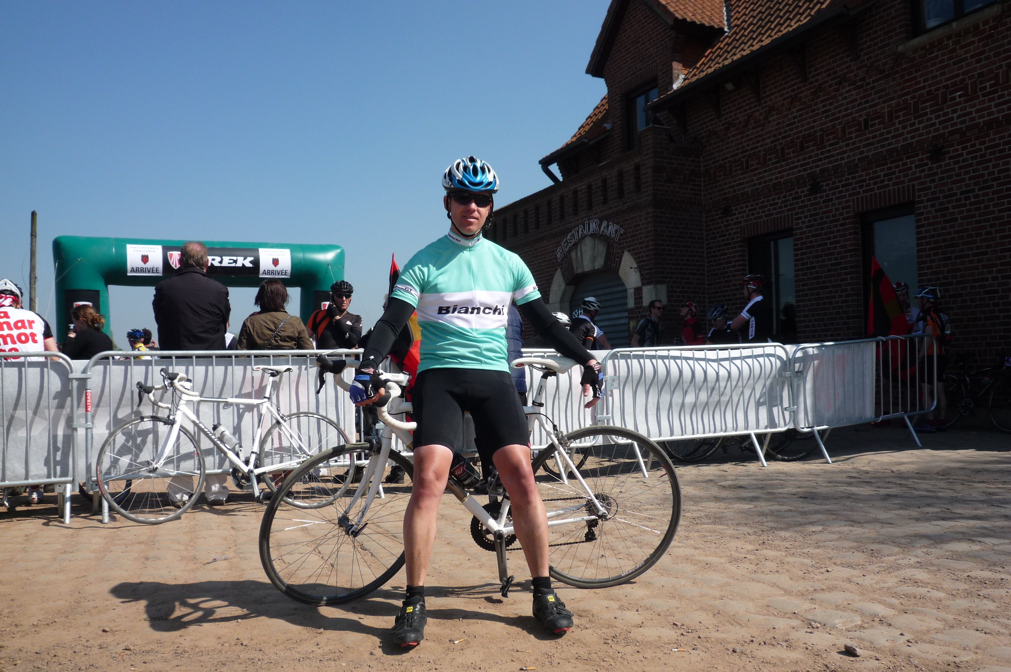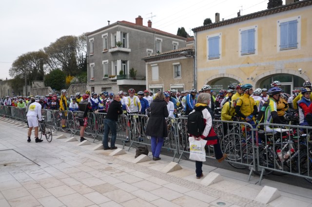 After our morning coffee we made our way to our prospective pens. Karsten, having had some races under his belt, pulled a bib number in the 3000’s, so he was sort of near the front. I was number 8124, so nearly in the next village over. You can’t get a sense of the number of riders, simply because you can’t see the end. But 10,000 is quite a few.