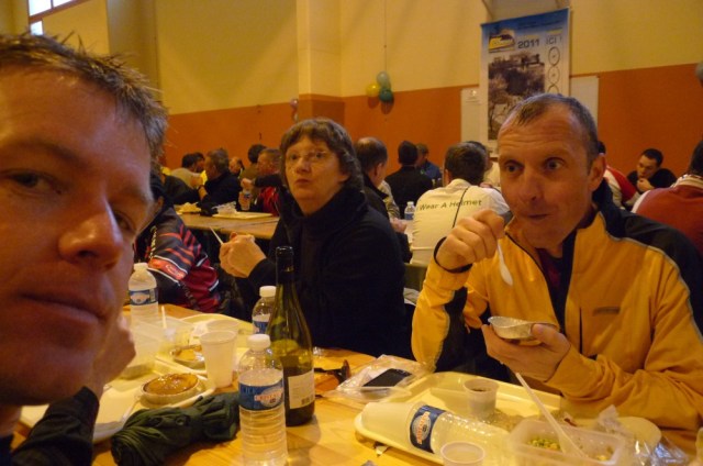 More logistics, but thankfully this time not mine. Sarah drove Karsten and I down to about 5 km outside of Modane, where we took this pre-dawn sleepy-pic. I don’t know how Karsten can manage that toothy grin in every photo; I could barely open my eyes for it.
