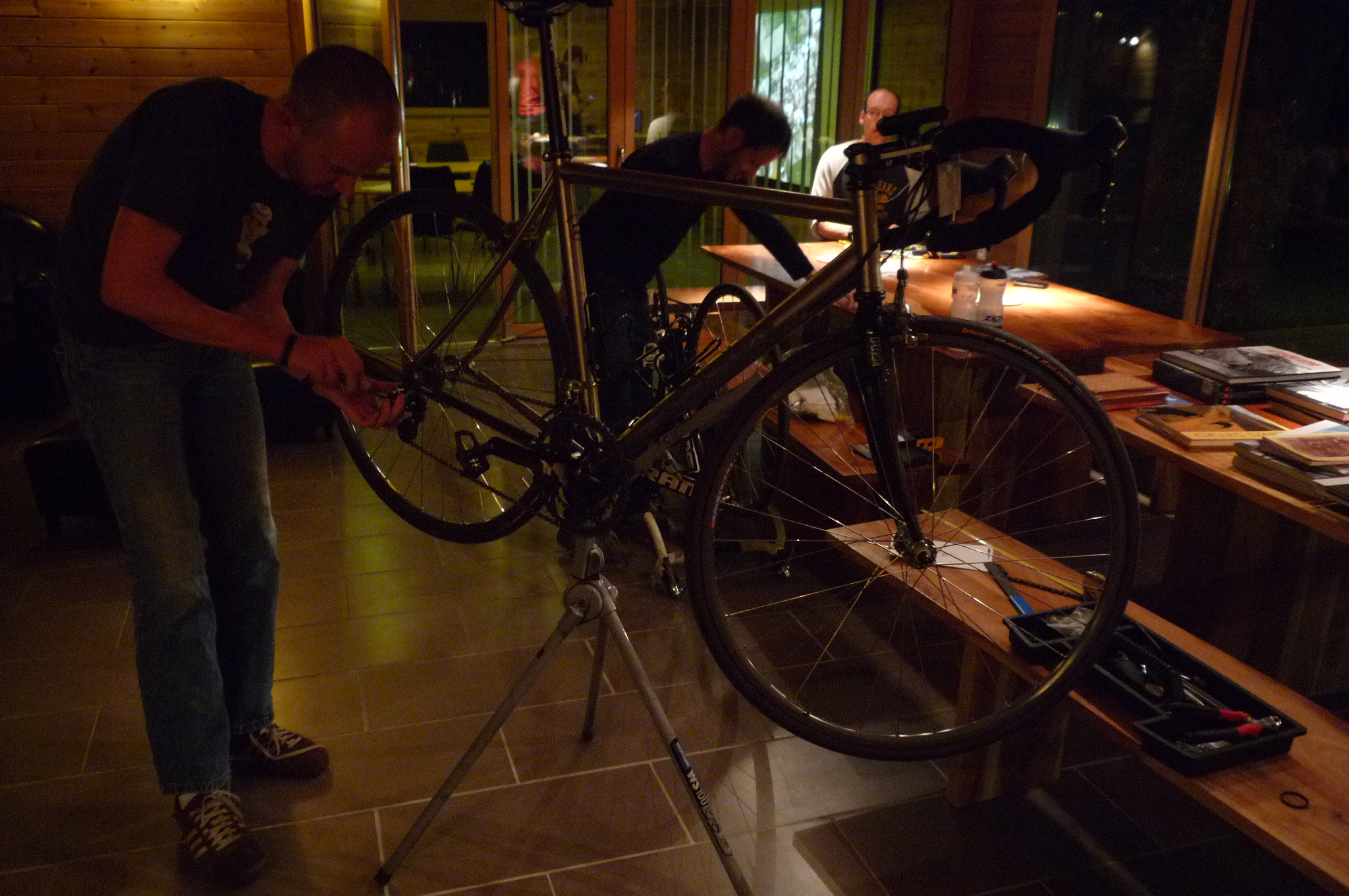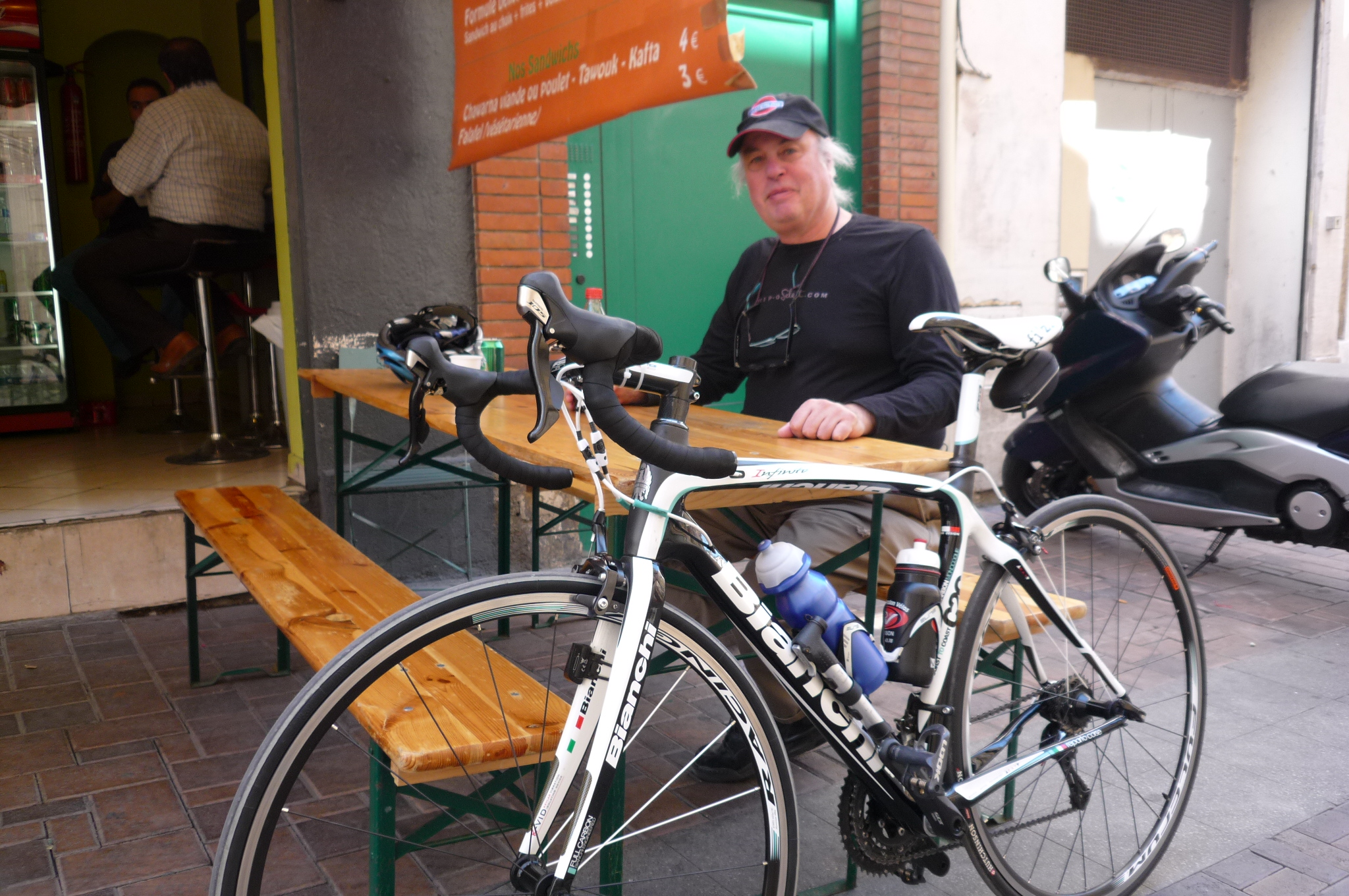 Why? Because I found out I had mountain bike pedals on my new bike (taken from my old touring bike) and that just won’t do. In France, it’s OK to lose, but you have to look good doing it. I did shave off a few hundred grams in the process (as well as a few hundred from my bank account…), and as the woman at the bike shop helpfully told me today, “you need all the advantages you can get”.