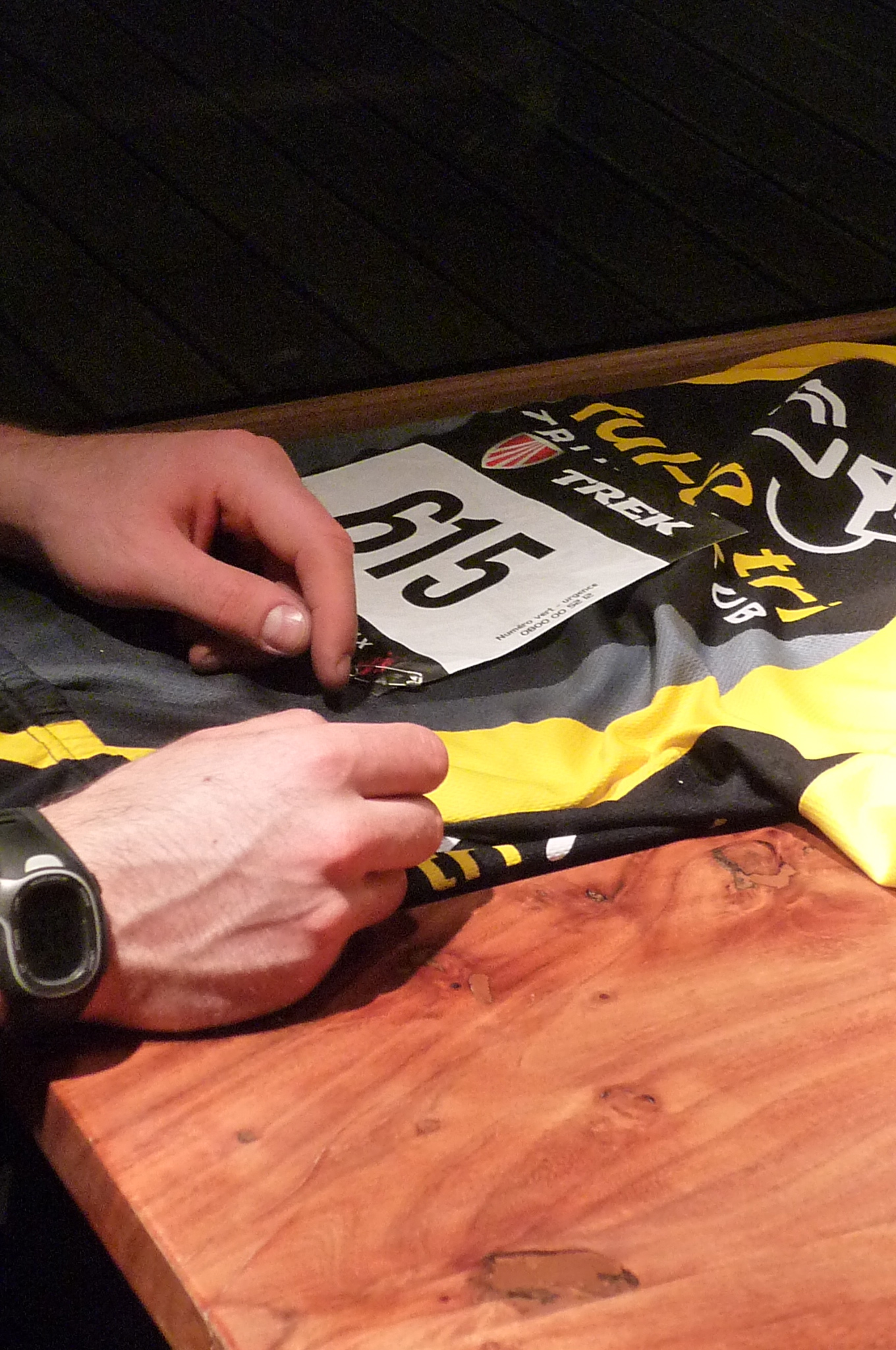 What I had originally thought was a weird esoteric joke by Karsten (he asked me if I had them yet), turns out to be a serious piece of intel on equipment that, for some reason, riders in France need to supply themselves. And it’s no joke, I read a blog recently about a Canadian who did a race in the Alps last year, only to have to run around in a panic before the start, trying to figure out a way to attach his race number to his jersey. Fortunately for him he found a generous soul with a stapler. So there’s more than one way to get those things on.