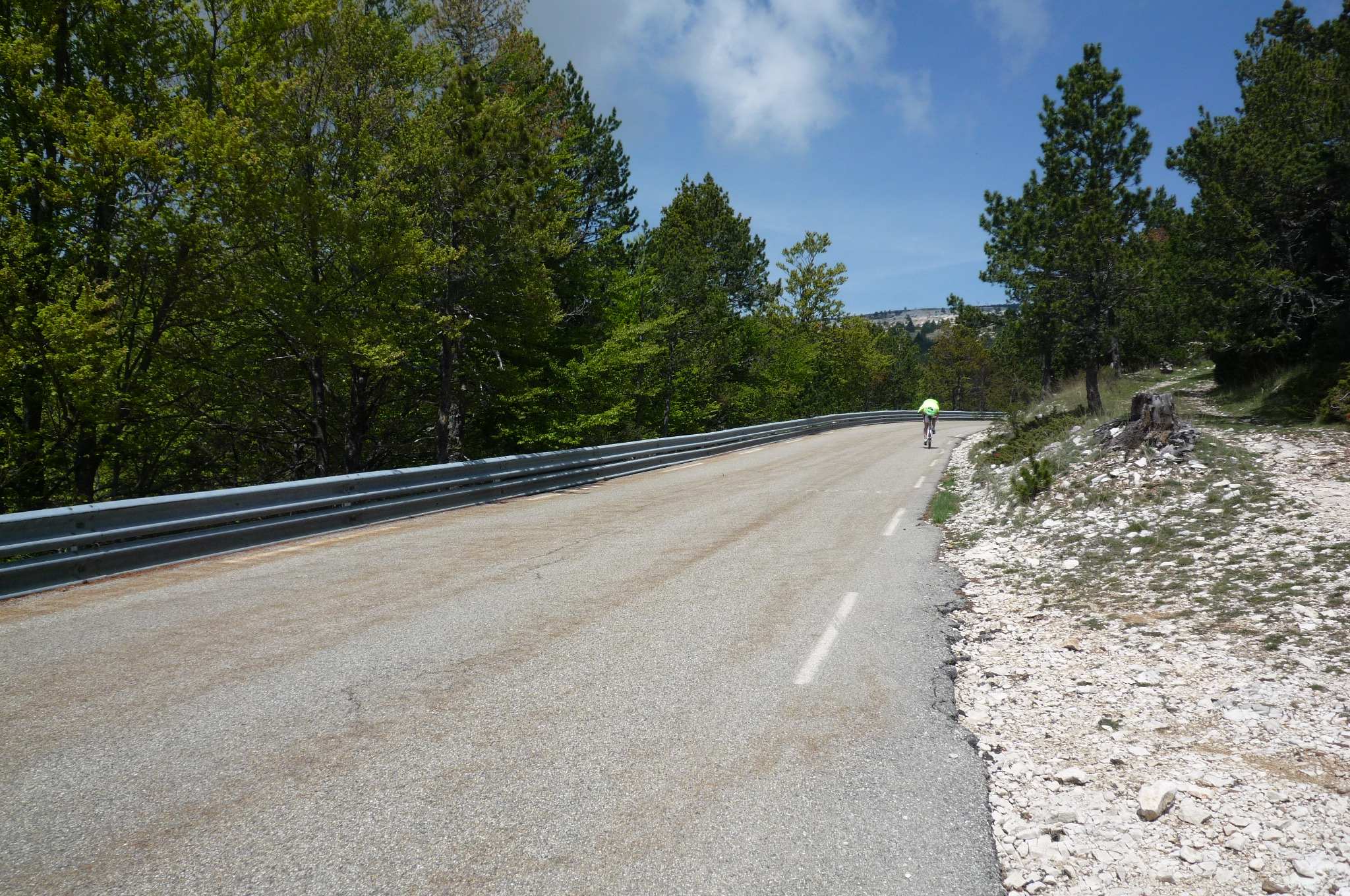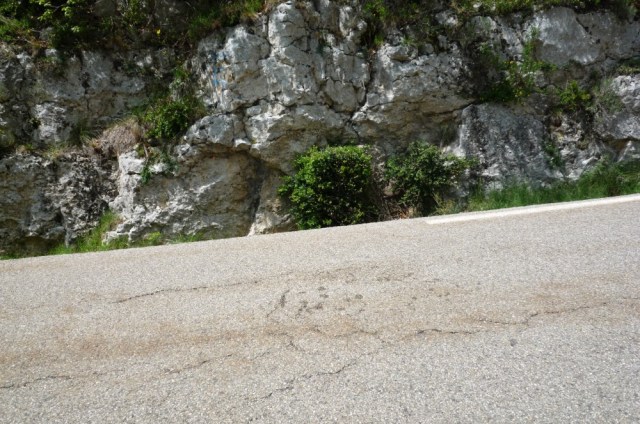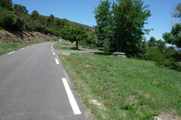 This next col is not much lower than the last one, but the grade is more human. In fact the last few km are nearly flat. The beginning though (before this sign) is steep and I’m certain this will be a point where the boys (please don’t let it be me, please don’t let it be me, please don’t….) are separated from the men.
