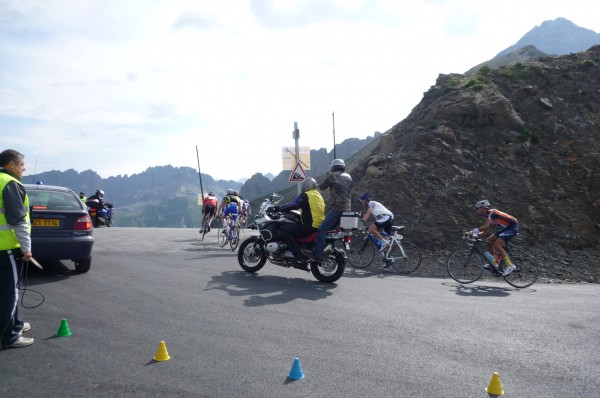 From here, Sarah went back up to Valloire, hoping to be able to pick up Shoko and come back down before the roads closed at 6:45. She had better luck with her gendarmes and, after asking them about closures, found out that her and Shoko could drive up and over Galibier ahead of the race (instead of going back against it – an extra 100 km or more probably) and get to the top of Alpe in plenty of time for the finish.