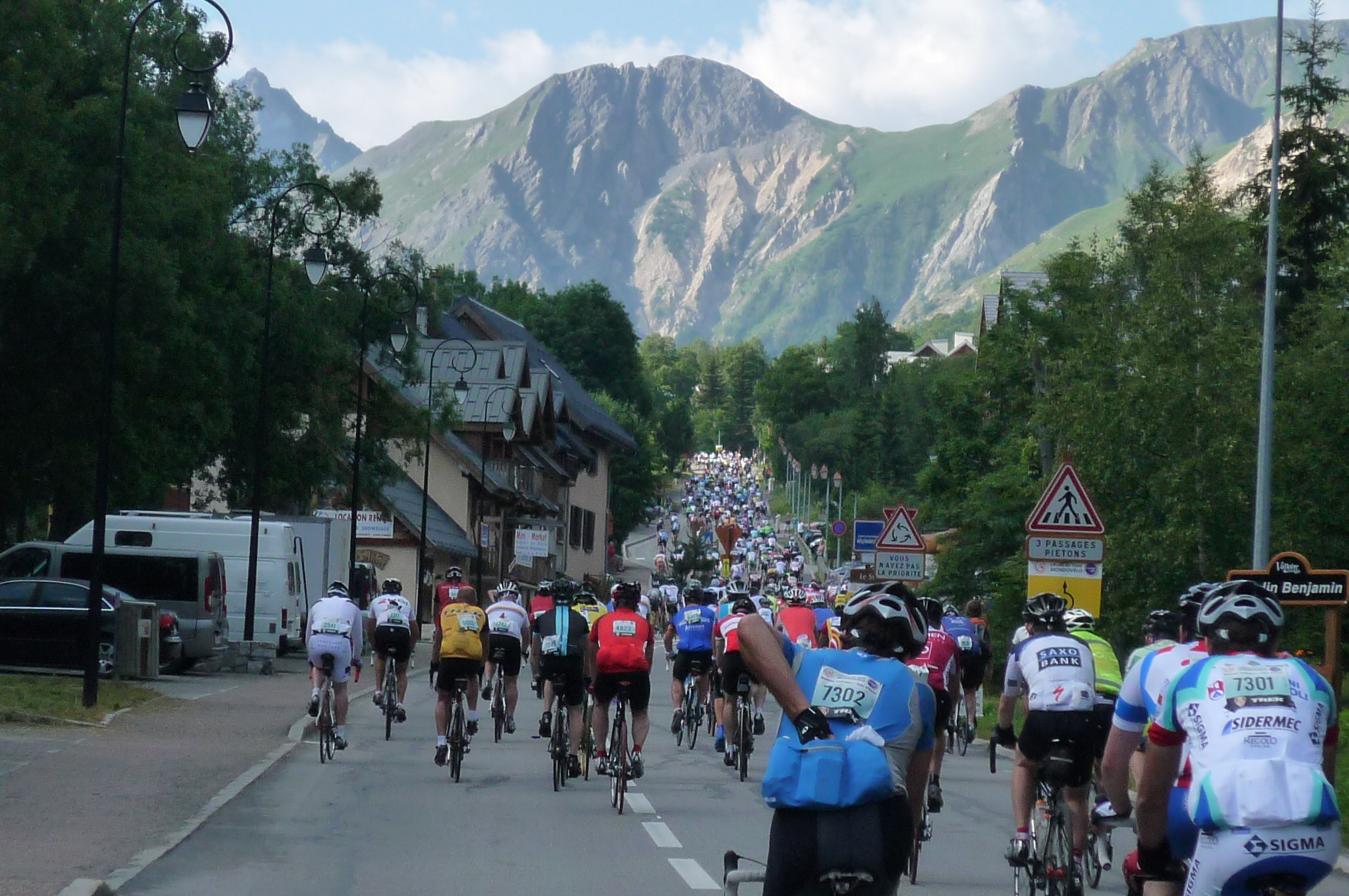 Check this out for logistics hell: there’s a start and a finish to the race, right? The race starts (or at least the ‘cage’ closes) at 6:30 am, I think, so you need to stay in, or near the starting village of Modane. Fine, let’s assume you can. If you have a car you can simply drive it to Modane and start the race…but then you are in L’Alpe d’Huez at the end of the race, totally screwed both physically and emotionally, without a car! Not to worry, the organizers don’t have that handle for nothing! There is a bus that will take you from the end of the race to the start on the day before. So, you drive to Alpe d’Huez and just hop on the bus, stay over in Modane and ride back the following day. Easy. Not so quick…there are NO BIKES ALLOWED on the bus. Now you have to drive to Modane, drop off your bike at a guarded pen of some sort, drive to Alpe d’Huez (2 or 3 hours), hop on the bus and another 2 or 3 hours back to where you started. Phew.