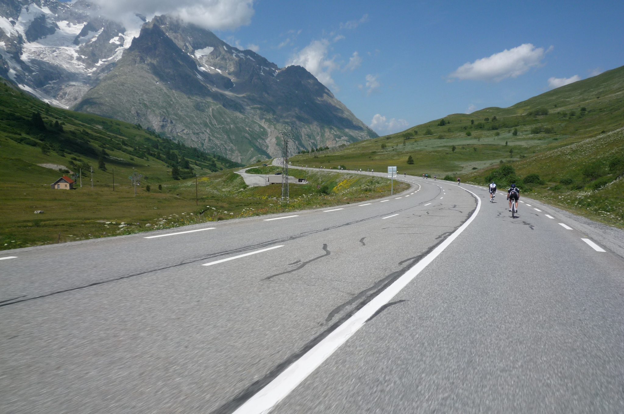 After a few long switchbacks the vistas opened up and we were undoubtedly in the high mountains. Galibier is one of the highest passes in the Tour de France and will be the highest summit finish ever next week when they stop on top.
